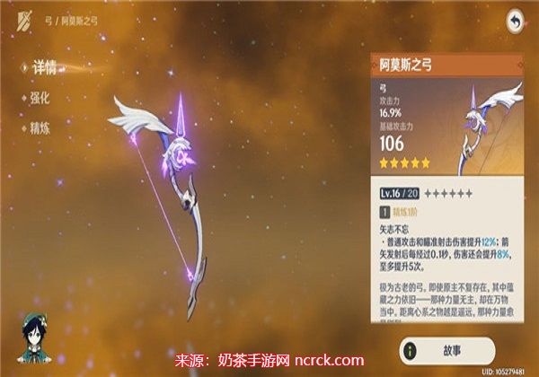 阿莫斯之弓的主要特点是可以提升普攻和重击的伤害,并且每经过0.1秒,伤害就会进一步提升。然而,这个特点与其他主流弓箭手的攻击方式并不搭配,包括安柏、九条、达达利亚和菲谢尔等角色,因此使用这把弓并不能有效地发挥其特效,因此曾被誉为“无用之弓”。