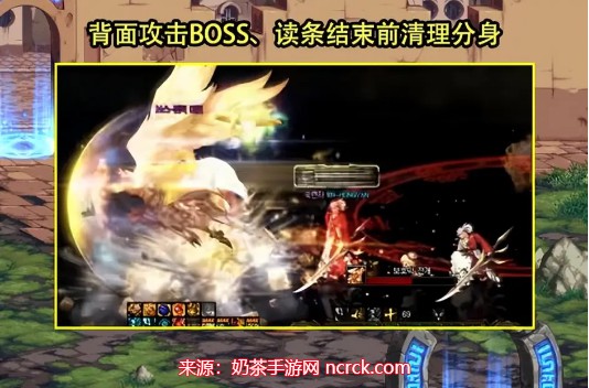 BOSS读条生成时会产生护盾冲刺,切记不要正面攻击,否则会产生大量玩家分身,背后攻击也会产生一些玩家分身,读条满之前,要及时清理分身。