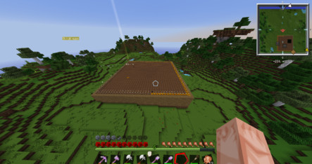 方法二:手持木斧,站在领地角落最低点的方块上,按下鼠标左键,然后在对角线的最高点方块上按下鼠标右键,就可以将领地划定;