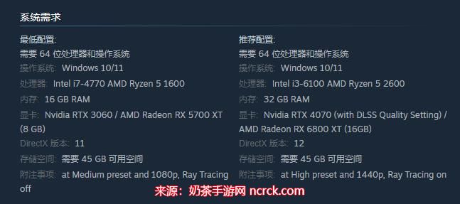 显卡:Nvidia RTX 4070 (with DLSS Quality Setting) 1 AMD Radeon RX 6800 XT (16GB)