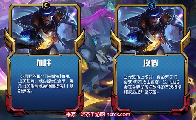 4-1升7人口,找到卡牌大师崔斯特,凑齐5未来战士羁绊,找到盖伦与尼菈,来和慎一起做前排坦克。