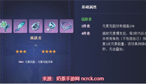 流放者4件套:+20%充能效率,且能给队友充能,适用全队伍。