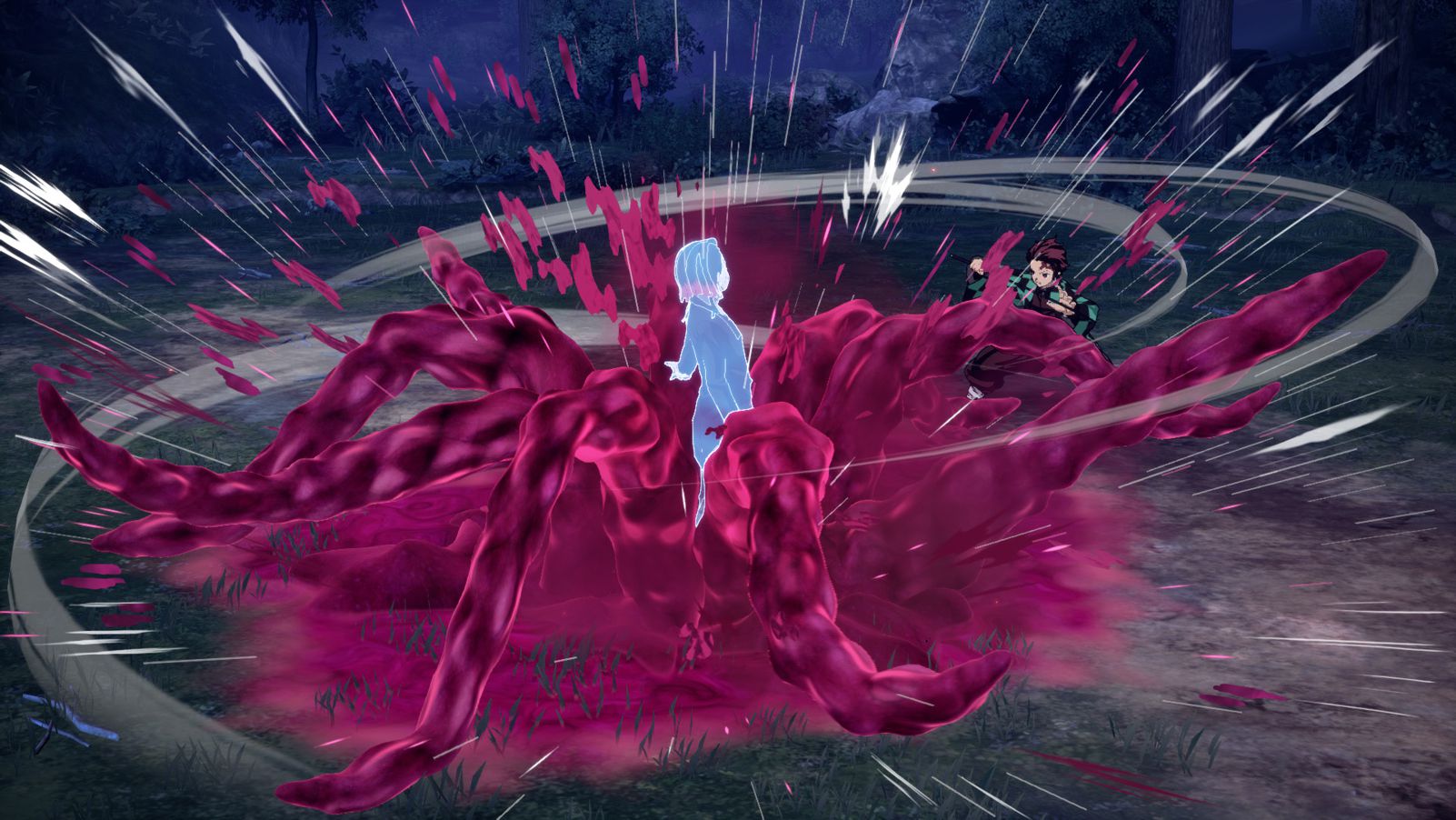《鬼灭血风谭》中,除了能重温动画《鬼灭之刃》剧情的单人模式外,还包含了能操作动画《鬼灭之刃》登场角色进行对决的对战模式。在对战模式中,最多支持2人进行离线或在线游玩。从灶门炭治郎、灶门祢豆子,以及其他在动画本篇登场的角色中,任意选择2名角色组合以2vs2的形式对战!以简单的操作带来爽快的战斗。