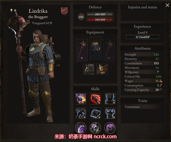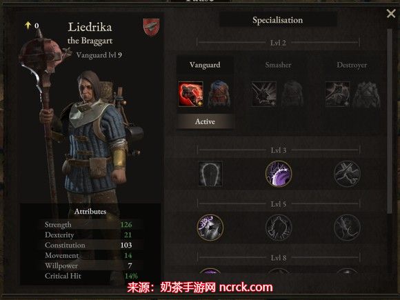 战术方面:前期作为队伍中主力破甲者和AOE,可以作为队长存在,通过冲锋与旋风锤给敌方上减速和流血dot,同时自身通过破甲快速获得永久Buff,利用移动力脱战,并再次调整站位进场,对于敌方轻、中甲角色都是极大威胁,很容易在一两回合内制造复数减员