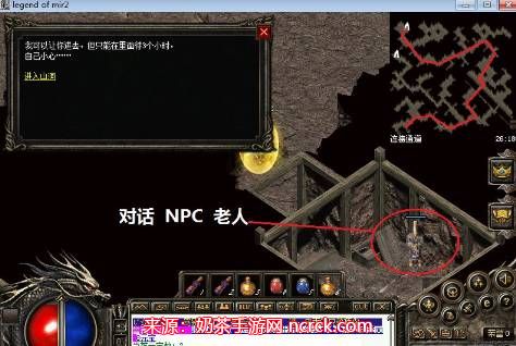 6.到达第三连接通道后,不要再跑了,打开大地图未知暗殿在大地图的左下角位置,坐标27,187对话NPC老人点击进入山洞,就可以到达未知暗殿了。