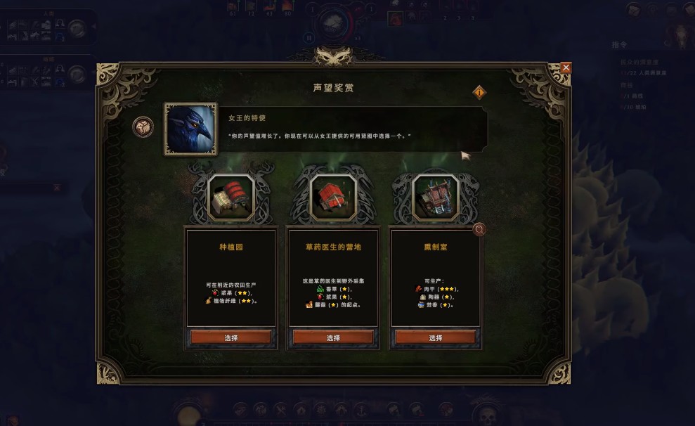较简单的功绩,建议在修正:被弃之神神殿旁开始完成本功绩。前期不要开启太多的女王指令,在殖民地的生产链较成熟后再打开女王的指令。此外注意预留部分可以快速打开的森林空地,因为有部分限时指令会要求你短时间内打开一定数量的空地,或者完成一定数量的森林事件。